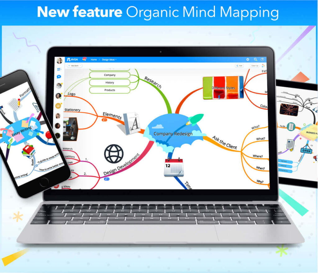 Inspired by the traditional, hand-drawn Mind Map, Organic Mind Mapping in Ayoa uses organic, curved branches to support and stimulate your natural thinking processes.