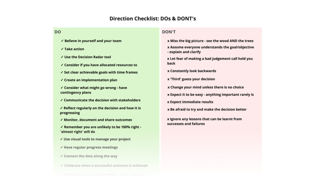 Align your actions with your overall strategy with Chris Griffiths’ Direction Checklist template.