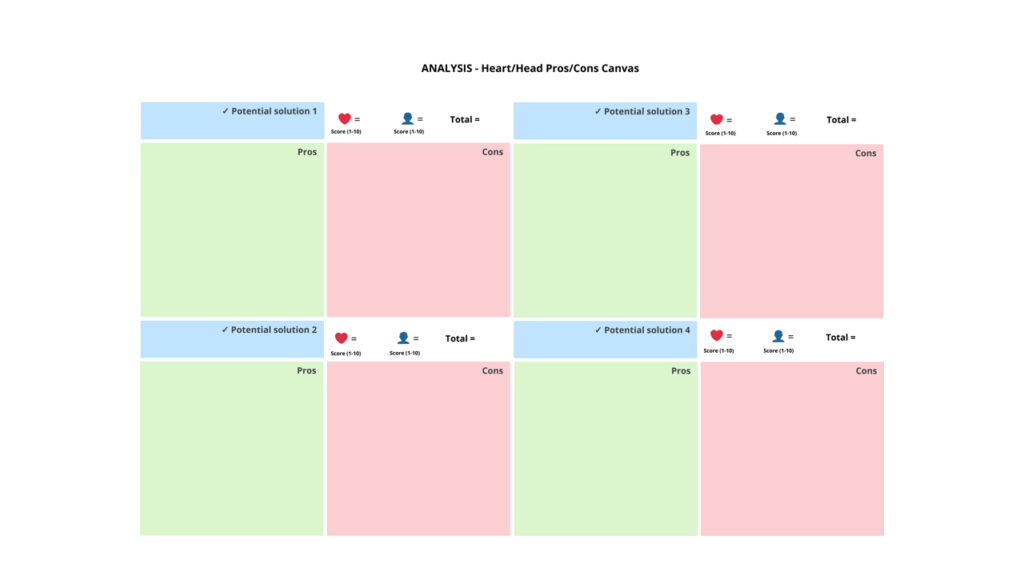 Align your head and heart efficiently and creatively with Chris Griffiths’ Heart/Head Pros/Cons Canvas template.