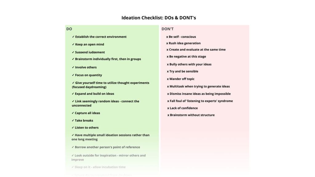 Make every brainstorming session one full of the right behaviours and free of creativity killers with Chris Griffiths’ Ideation Checklist template.