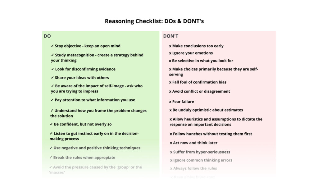 Employ objective strategising when facing up to a problem with Chris Griffiths’ Reasoning Checklist template.