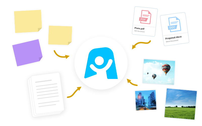 Add context to your whiteboard by attaching files and documents from your computer, Dropbox or Google Drive.